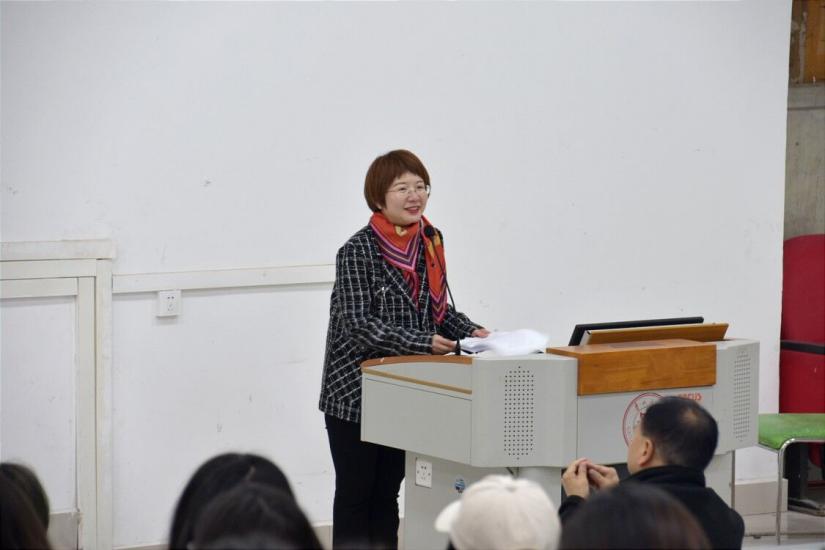 副院长唐娟围绕本科学生毕业阶段的培养要求进行讲解。首先,她为同学们讲解了包括成绩排名、GPA、英语水平等级等在内的学士学位授予条件,就毕业论文提交初稿、定稿、答辩等相关工作安排作详细介绍。她希望同学们在论文写作过程中严格要求自己、遵守学术规范。