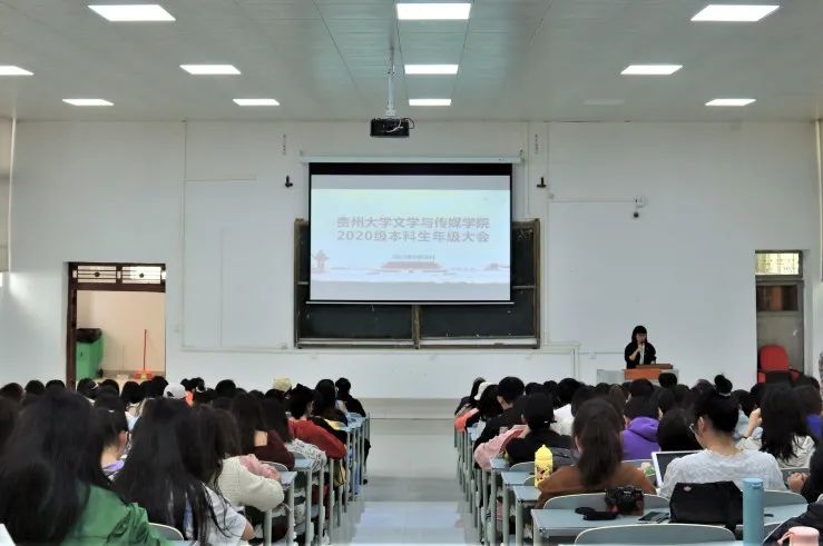 3月18日,文学与传媒学院于法学楼101DT召开2020级本科生年级大会,学院党委书记李开学,院长谭德兴,党委副书记、副院长唐娟,副院长赵永刚以及学院教学科科长郭付利,学院思政辅导员,2020级全体本科生参加本次会议。会议由学院学生科科长王婷婷主持。