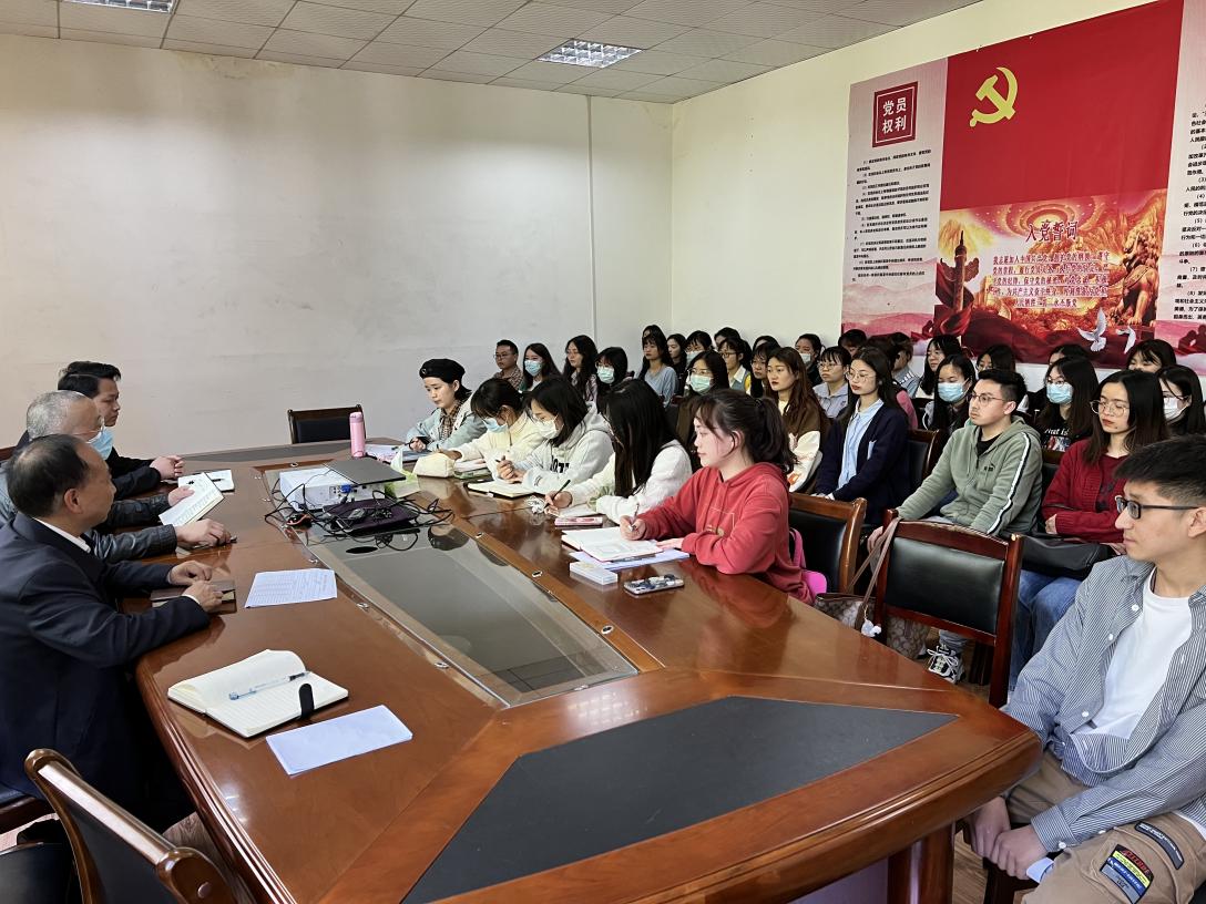文学与传媒学院于2022年4月7日下午14点在人文楼204会议室召开了2018级拟升学学生指导会。学院党委书记李开学,副书记、院长谭德兴,副院长赵永刚,思政辅导员张健以及学院2018级拟升学全体在校生50余人参加会议。会议由张健主持。