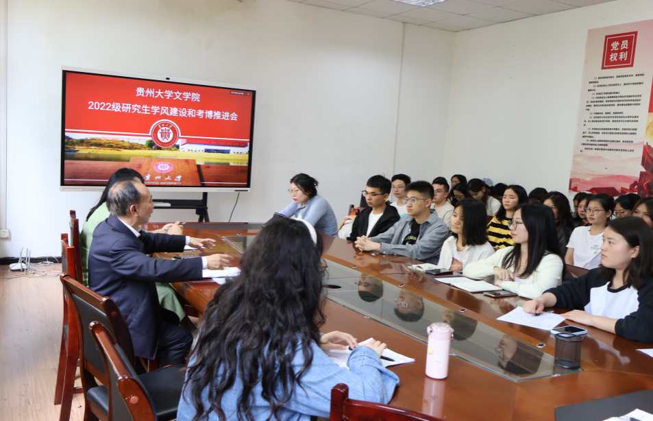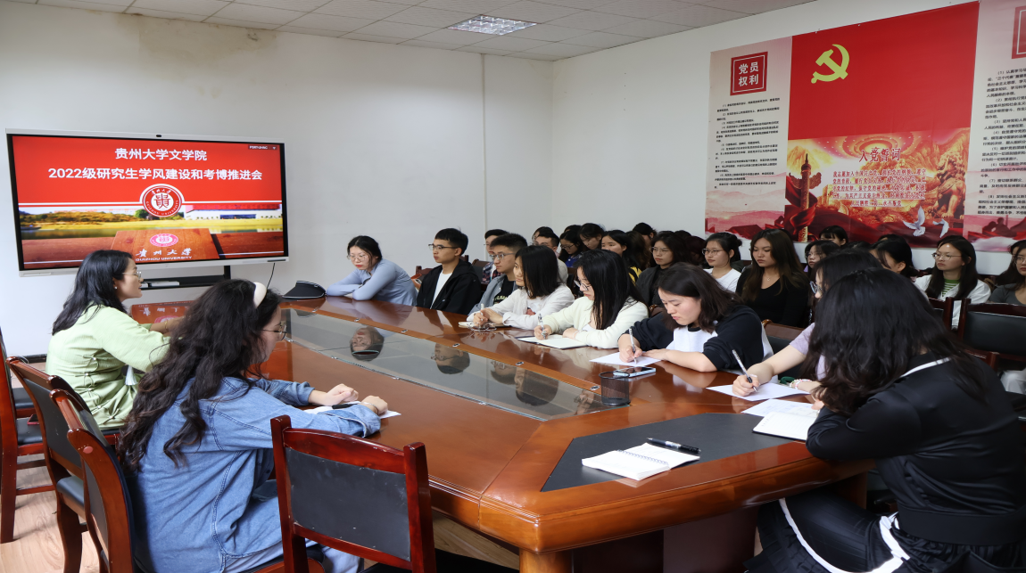 为扎实推进学院学风建设、营造浓厚学习氛围,不断提升研究生人才培养质量,2024年5月10日下午,我院在人文楼204会议室召开了“贵州大学文学院2022级研究生学风建设和考博推进会”,学院党委书记李开学,副书记院长谭德兴出席会议,研究生辅导员罗兰主持会议,2022级全体研究生参会。