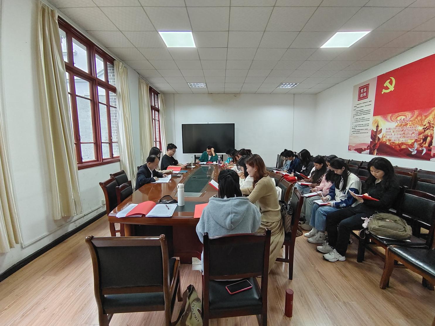 2024年5月12日,贵州大学文学院分党校在人文楼204开展第19期党员发展对象班集中讨论学习,院党委书记李开学、学生辅导员兼班主任曹家鹏进行现场指导,19名党员发展对象参与学习。