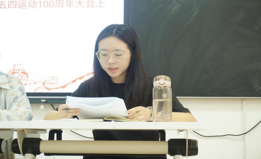 研究生团总支副书记吴先兰领学《习近平总书记在纪念五四运动100周年大会上的讲话》。重温“五四”精神,深刻学习领会习近平总书记的殷殷嘱托,引导学生矢志不渝跟党走,脚踏实地,争做有理想、敢担当、能吃苦、肯奋斗的新时代好青年。