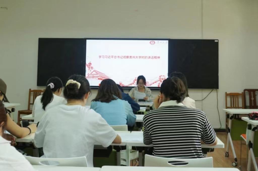 2024年5月24日,共青团贵州大学文学院研究生总支部委员会在人文楼203教室组织开展“牢记殷殷嘱托,勇担青春使命”溪山习政理论学习活动。研究生辅导员罗兰及2023级全体研究生参加学习,会议由文学院研究生团总支书记杜瑶瑶主持。