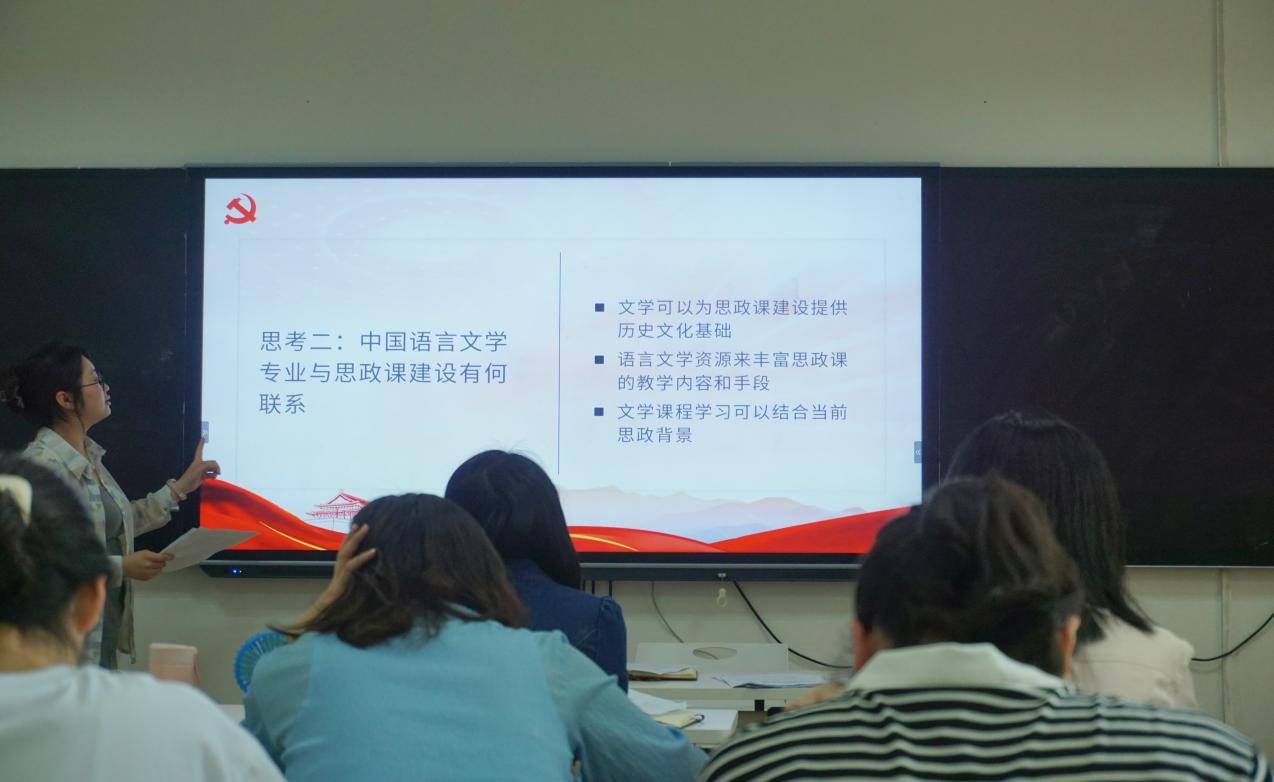 杜瑶瑶领学习近平总书记对学校思政课建设作出的重要指示精神。她切合实际地提出当代大学生对思政课的看法和中国语言文学专业与思政课的联系两个问题,引导同学们进行深入思考、把握其核心要义和丰富内涵。