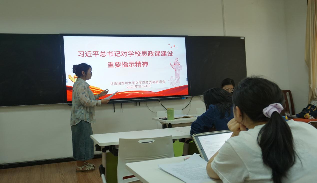 2024年5月24日,共青团贵州大学文学院研究生总支部委员会在人文楼203教室组织全体团员学习习近平总书记对学校思政课建设作出的重要指示精神。研究生辅导员罗兰及2023级全体研究生参加此次学习,会议由研究生团总支书记杜瑶瑶主持。