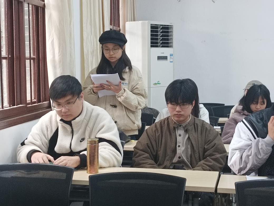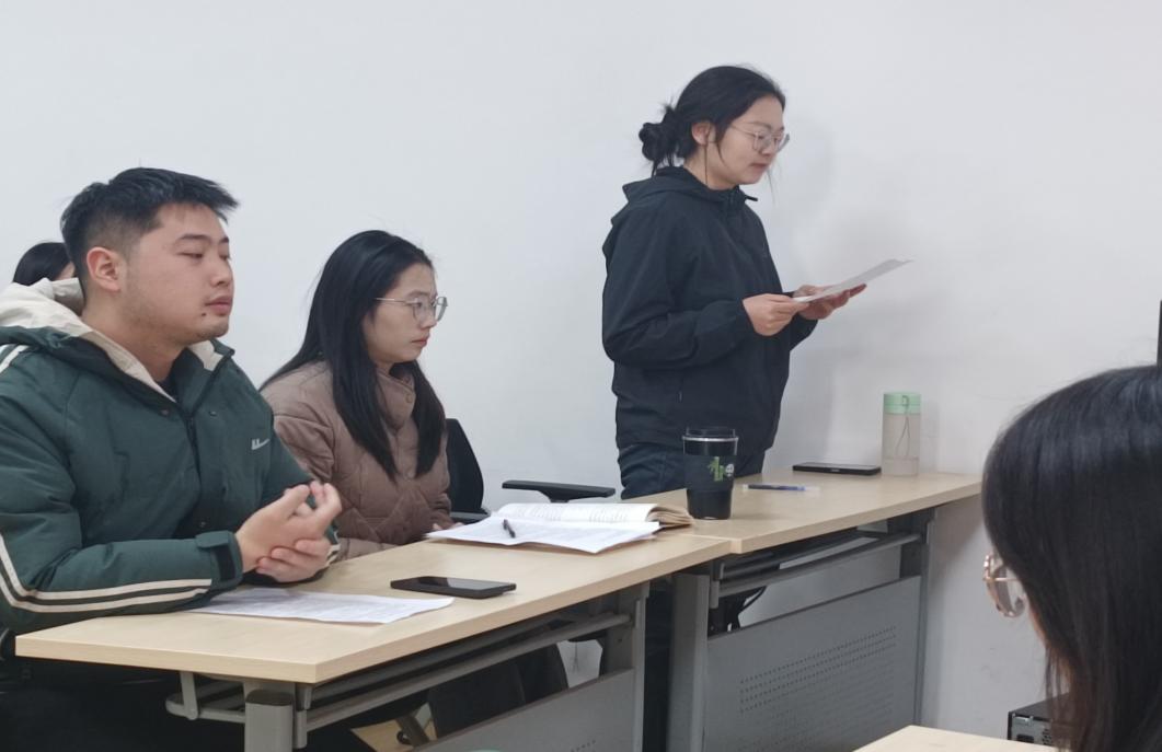 2024级文艺学专业吴磊、文字学专业胡蝶、文字学专业周小靖同学分别进行中心发言。