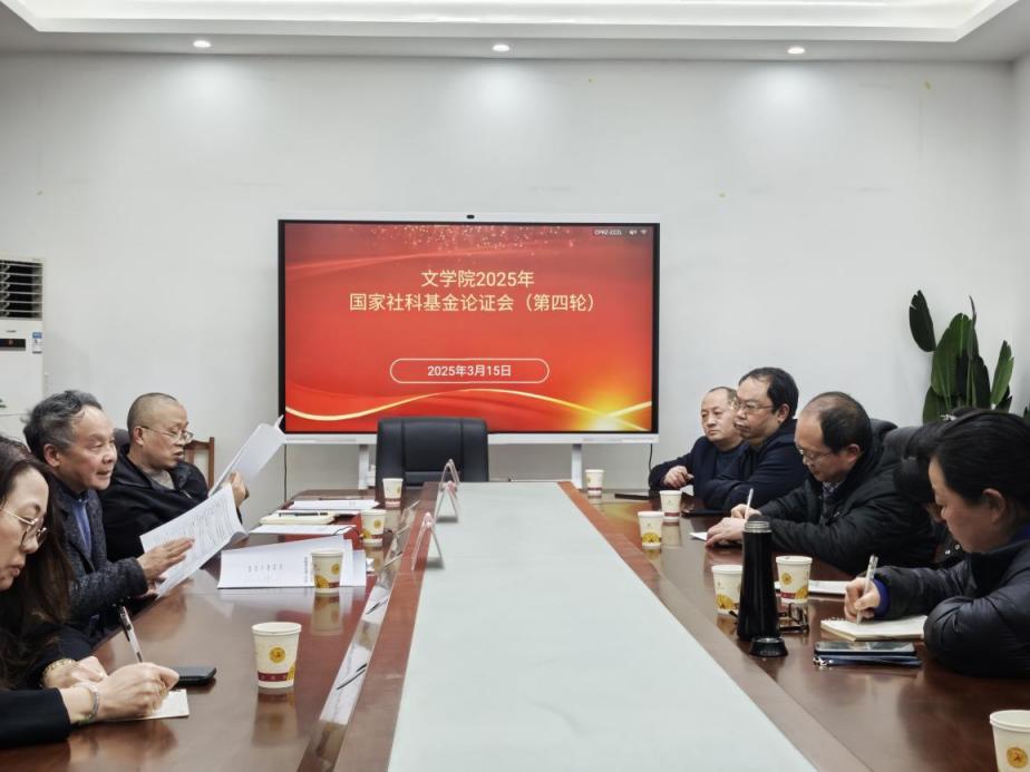 为扎实推进2025年度国家社科基金项目申报工作,进一步提升申报书质量,文学院于2025年3月15日下午在104会议室组织召开第四轮国家社科基金论证会。本次会议特邀武汉大学文学院陈文新教授担任指导专家,文学院院长谭德兴、副书记兼副院长赵永刚及文学院拟申报2025年度国家社科基金项目的教师参加会议。