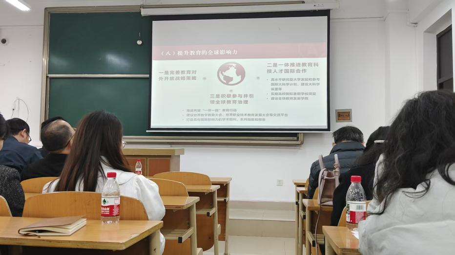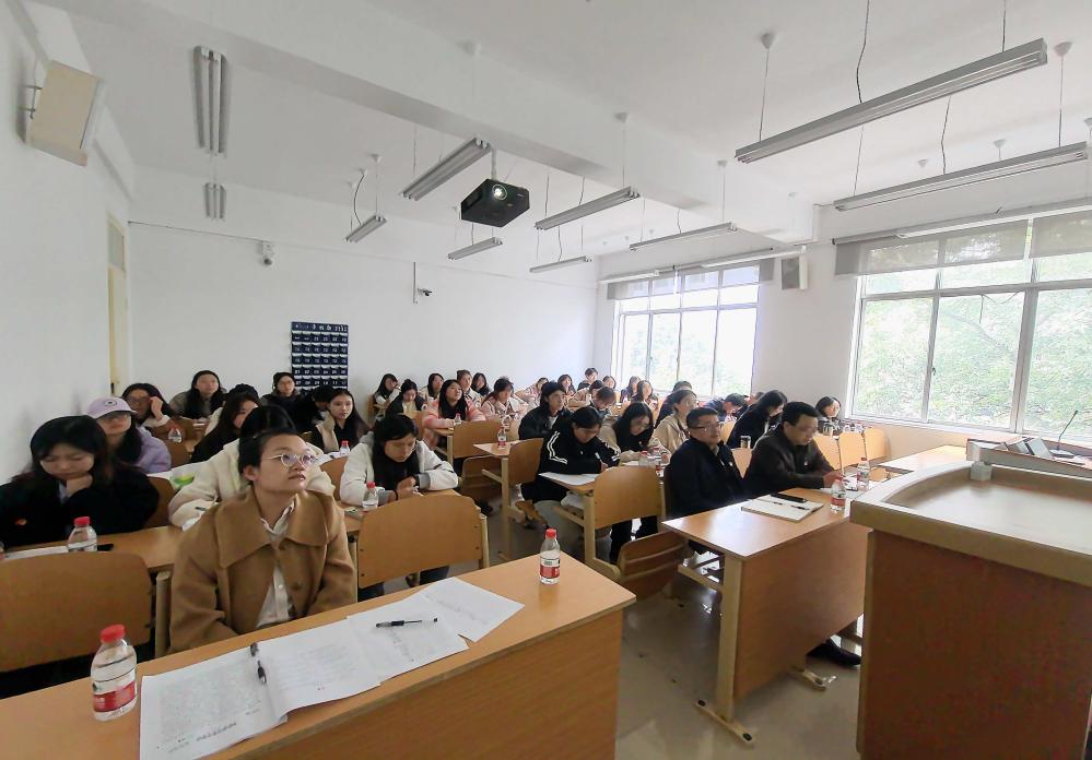 2025年10月24日下午,贵州大学举行了2025年党员基本培训第二次集中大课。为确保全院师生党员深入参与学习、深刻领会培训精神,文学院全体教职工党员和学生党员共100人,分别在东校区逸夫楼406D、407D两个分会场同步集中观看学习教育部党组书记、部长怀进鹏主讲的专题辅导报告。