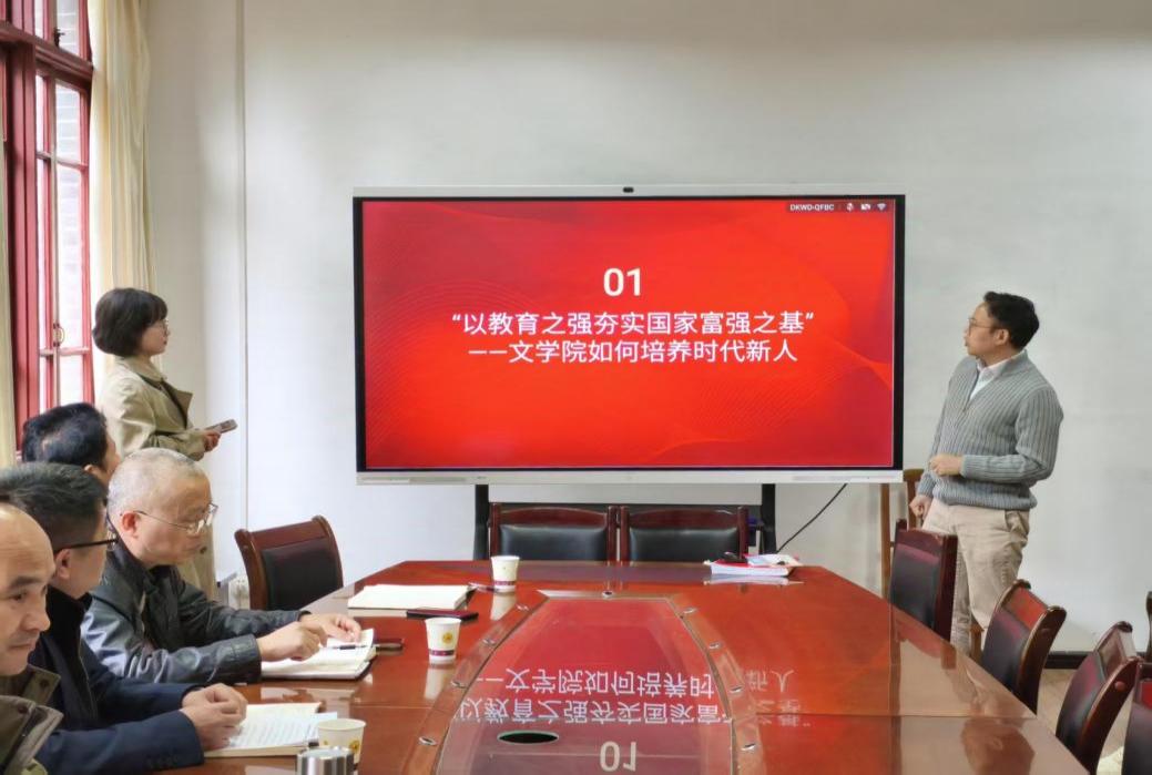 宣讲围绕“以教育之强夯实国家富强之基”展开,系统阐释了文学院在培养德智体美劳全面发展的社会主义建设者和接班人方面的理念与路径。学院通过贯彻落实“六个下功夫”,学院将理想信念教育、爱国主义情怀与专业教育深度融合,组织开展红色经典朗诵会、红歌合唱比赛、主题读书会、社会实践调研、综合运动会等系列品牌活动,构建起“五育并举”的育人体系,全面提升学生的综合素质与使命担当。