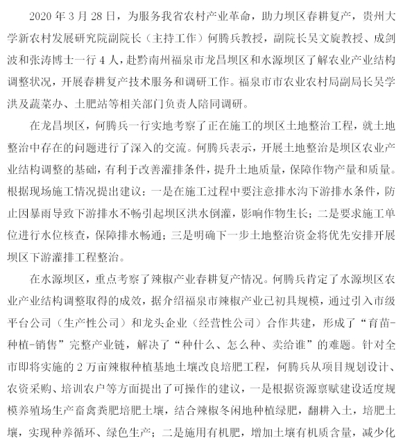 新农村发展研究院服务福泉市坝区春耕生产