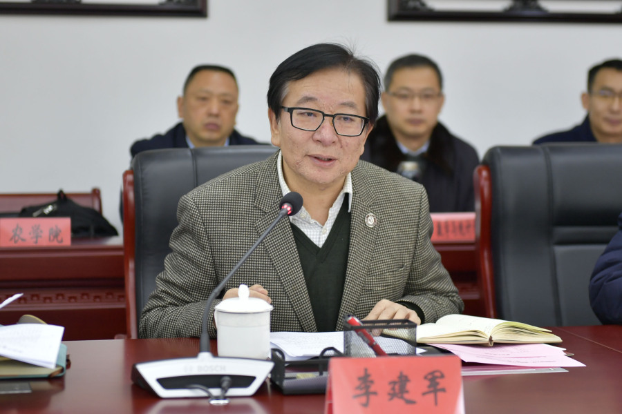 李建军致辞。他说,中国农业大学和贵州大学自对口合作以来,两校情同手足、通力配合、携手前行,在互访交流、人才引进、科研合作以及贵州大学申报贵州科技小院项目上,取得了一系列合作成果。下一步,希望中国农业大学在人才培养、师资队伍建设、人员挂职、科研合作以及对科技小院建设等方面给予贵州大学帮助和支持,助力贵州大学在西部高等教育事业发展和贵州乡村振兴战略中做出贡献。