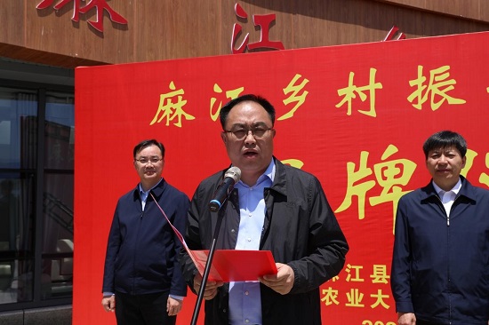 宋宝安讲话。他表示,乡村振兴研究院挂牌标志着为国家乡村振兴战略实施提供贵州实践和贵州经验迈出历史性步伐,同时,贵州大学麻江乡村振兴研究生工作站也一并挂牌,将为贵州大学研究生人才培养创新开辟新天地。2014年以来,贵州大学通过多种方式参与和见证了麻江县的脱贫攻坚工作。研究院的成立,是落实“2+1”校地战略合作的具体行动之一,也是深化战略合作的重要抓手和平台。希望研究院为麻江农业农村高质量发展增添新动能,共同打造服务乡村振兴“麻江样板”,为麻江县加快推进农业农村现代化和乡村全面振兴贡献智慧和力量。