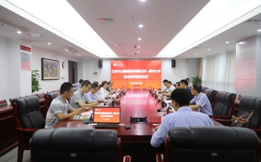 6月11日上午,江苏丰山集团股份有限公司——贵州大学校企合作签约仪式在我校西校区贤正楼1号楼202会议室举行。丰山集团董事长殷凤山、副总裁单永祥,我校校长宋宝安院士出席签约仪式 。江苏丰山集团股份有限公司及我校相关职能部门、学院负责人参加会议。