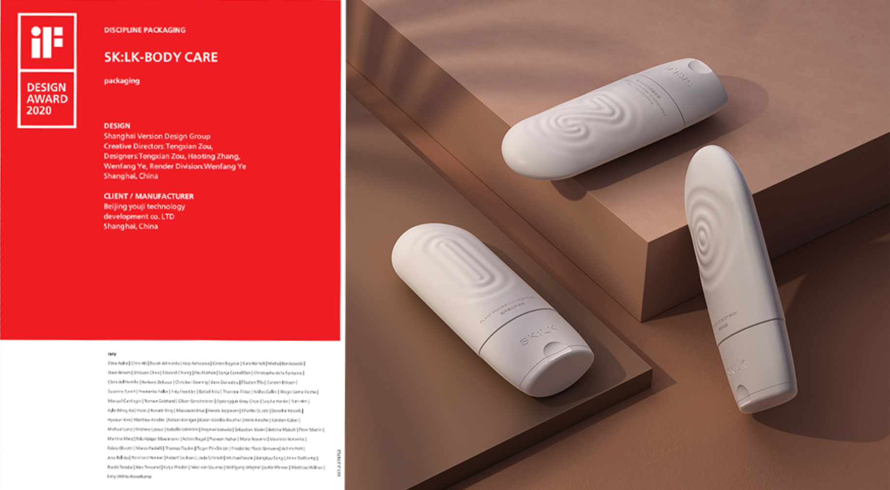 2000级设计系学生邹腾显作品 《SK:LK-友肌》 这是一套洗护产品,包含了“养发、洗发、沐浴露”。通过简洁、纯粹且大众都熟知的语言,让产品外观识别具有很强的沟通力和极致的肤感体验,于是将数字“0、1、2”与涟漪形态相结合,产品选用了细腻、柔软的磨砂材质。这一产品形象向消费者清晰地传达产品的使用场景和先后顺序,同时也暗示了其品牌安全、亲肤的理念。