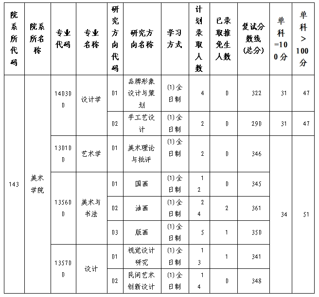 根据《教育部关于印发<2025年全国硕士研究生招生工作管理规定>的通知》(教学〔2024〕4号)文件规定及教育部相关会议精神及贵州大学《关于做好贵州大学2025年硕士研究生招生复试录取工作的通知》(贵大研〔2025〕12号)文件精神及学校招生录取工作会议精神,为做好我院2025年硕士研究生招生复试录取工作,特制定工作细则如下。 一、工作原则 (一)坚持“综合评价、择优录取”的原则。落实立德树人根本任务,牢固树立“考试招生育人”的理念。坚持德智体美劳全面衡量,以提高招生质量为核心,落实分类选拔要求,突出创新能力、专业素养和综合素质等方面的考核。 (二)坚持“公平、公正、公开”原则。严格执行政策,严守工作纪律,加强复试资格审核,科学制定复试录取办法,规范复试录取程序,强化复试监督检查,坚决维护考试公平公正。 (三)坚持“以人为本”原则。优化考生服务,加强信息公开,确保咨询畅通,合理安排各项工作时间,切实维护考生合法权益。 (四)坚持“集体议事、集体决策、会议决定”的原则。加强组织领导,落实主体责任,加强应急处置,确保安全平稳。 二、复试工作要求 (一)时间及地点安排 复试工作拟于2025年3月26日、3月27日进行(26日现场面试,27日笔试(专业测试)),复试安排详见附件1。 (二)资格审查 学院对考生的资格审查材料进行审查。请考生于2025年3月25日14:30—17:00到贵州大学美术学院润正楼5号楼210进行复试前的资格审查,审查材料如下: 1.初试准考证。 2.居民身份证复印件(正反面印在一页A4纸上)。 3.考生本人签名的《诚信复试承诺书》(详见附件2)。 复试前考生须签订《诚信复试承诺书》并自觉遵守,在复试结束前不得对外透露或传播复试试题内容等有关情况,诚信应试。 4.学籍学历证明。应届生提供学生证或具有验证码的《教育部学籍在线验证报告》;往届生提供毕业证书或具有验证码的《教育部学历证书电子备案表》或《教育部学历认证报告》(在境外、国外取得学位的,须提供教育部留学服务中心出具的《国(境)外学历学位认证书》)。 5.“退役大学生士兵”专项计划考生还须提供本人《入伍批准书》和《退出现役证》原件的扫描件或照片。 6.“少数民族高层次骨干人才计划”须提供《少数民族高层次骨干人才计划考生登记表》原件的扫描件或照片。 未进行资格审查的考生,不得参加复试;资格审查不通过者,不得参加复试;对不符合规定或弄虚作假者,一经查实,视为资格审查不通过,取消复试资格。 (三)复试内容及成绩计算方法 1.复试形式: 采用现场面试+笔试(专业测试) 复试内容: (1)现场面试(综合能力面试和英语听说能力面试):面试时间每人一般不低于20分钟。对考生的思想政治素质和品德、综合素质和能力、专业素质和能力、英语听说能力等进行全面考查和评价。 (2)笔试(专业测试):对考生专业素质能力进行考查。 2.复试成绩组成: 复试成绩满分为100分(保留小数点后两位),其中现场面试成绩占70%(综合能力面试占85%+英语听说能力面试15%),笔试(专业测试)成绩占30%。复试成绩不合格者(<60分)不予录取。思想政治素质和道德品质考核不作量化计入总成绩,但考核结果不合格者不予录取。 3.总成绩计算方法: 考生总成绩由初试成绩和复试成绩根据比例计算而成。 具体算法:总成绩=(初试成绩÷5)×X+复试成绩×Y X(初试成绩权重)为50%,Y(复试成绩权重)为50% 。 (四)录取计划及复试分数线 符合初试成绩基本要求且生源充足的专业,复试差额比例不低于120%。符合初试成绩基本要求但生源数量少于招生计划120%的专业,全部合格生源参加复试。