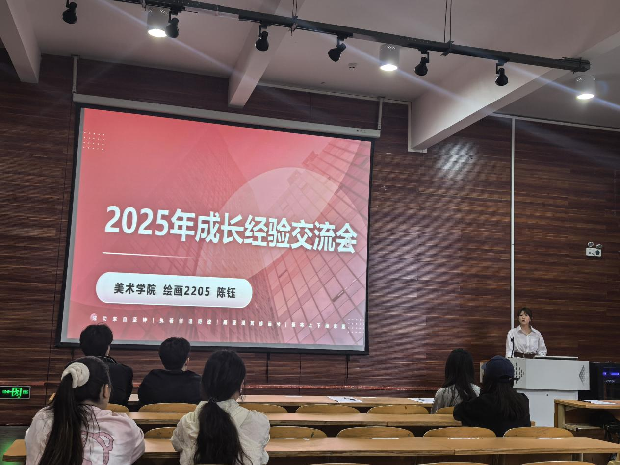 2025年5月23日,贵州大学美术学院在学院润正楼5号楼负103阶梯教室开展“至善”社区思政课——“共话成长”大课堂,活动由美术学院付玉红老师、获得贵州大学学习之星的绘画2205班陈钰同学给大家带来一场干货满满的成长经验交流。 此次活动旨在搭建学子交流平台,通过优秀同学做主分享,辅以老师引领,助力共同成长。