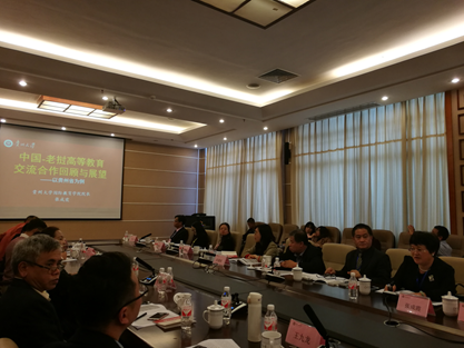会议期间,院长张成霞积极与参会老挝高校领导进行交流,努力促进下一步的合作。还与老挝教育与体育部高等教育司司长塞空·塞那信进行了亲切交流,张院长首先介绍了贵州大学与老挝国立大学、琅南塔省教育厅、华潘省教育厅的合作情况,希望能够与老挝其他高校诸如老挝私立大学协会等机构开展合作,更希望能够得到老挝教育与体育部高等教育司的支持。塞空·塞那信司长表示,会全力支持老挝各教育机构与贵州大学的合作,特别是进一步推动留学生教育的发展。