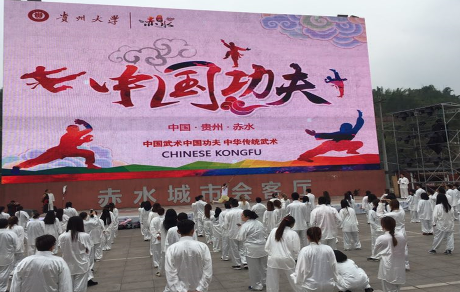 当天下午,众人到达赤水游客中心,观赏体验贵州省非物质文化遗产——赤水游氏武术。老师们组织学生换上整齐的中国传统武术服,一同观看游式武术传承人的拳脚、器械表演。据主持人介绍,赤水游氏武术集众武术门派之精华为一体,不但具有很高的观赏性、娱乐性,还具有修身养性、强身健体等功效。学生们看完表演后积极上台向大师讨教切磋,在一招一式间感受中华武术柔中带刚的魅力。