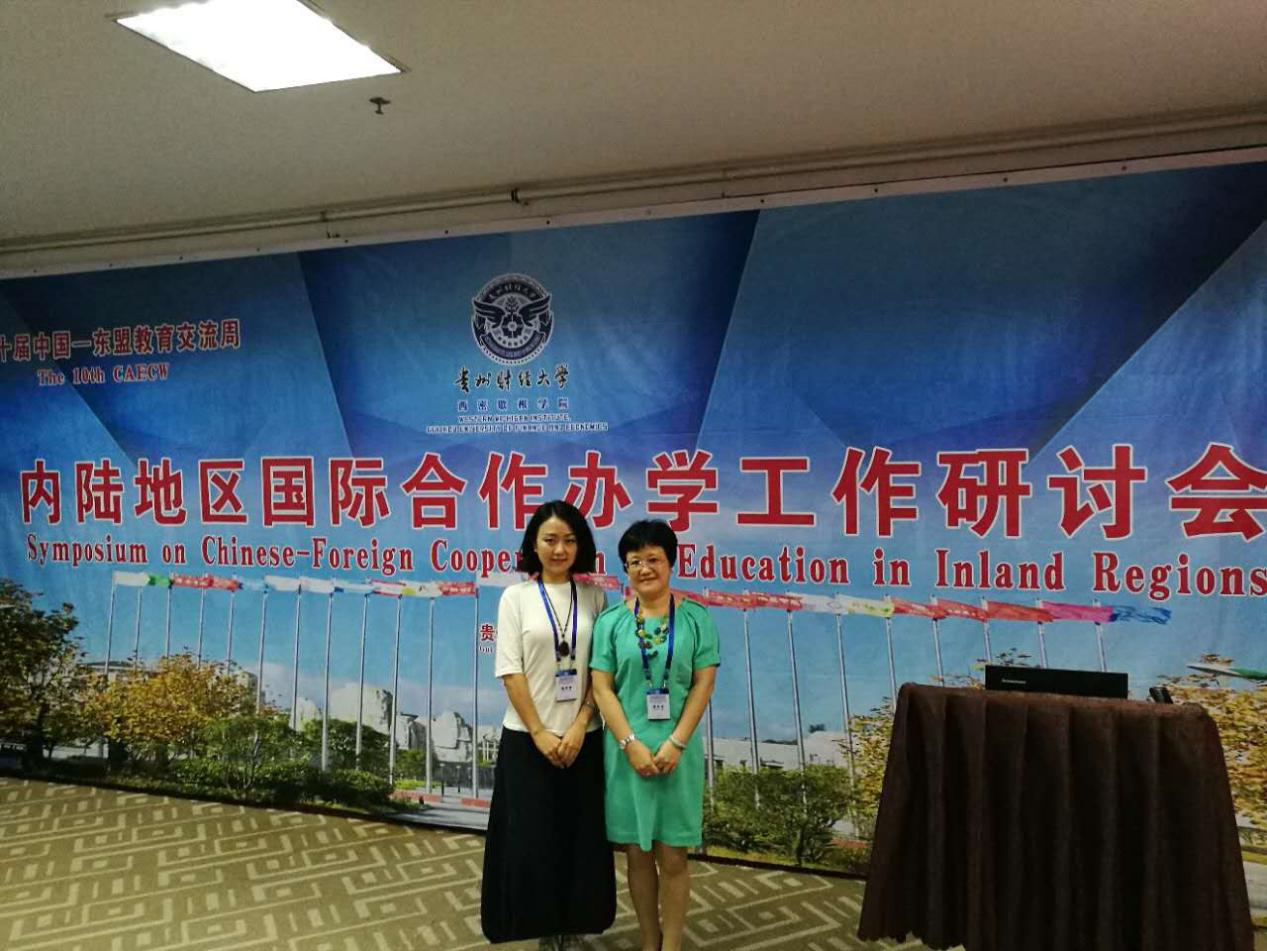 2017年7月7日下午三时,贵州大学国际教育学院院长张成霞、教学科研科科长唐颖参加了在贵州财经大学鹿冲关校区举办的第十届中国——东盟教育交流周系列活动之内陆地区国际合作办学工作研讨会暨贵州财经大学西密歇根学院成立大会。会议共分为两个部分,第一部分为西密歇根学院揭牌成立大会;第二部分为内陆地区国际合作办学工作研讨会,来自厦门大学、兴义民族师范学院、吉林大学莱姆顿学院的各位专家和贵州财经大学西密歇根学院院长分别进行了主题发言,与会专家也就国际合作办学工作的开展进行了研讨交流。
