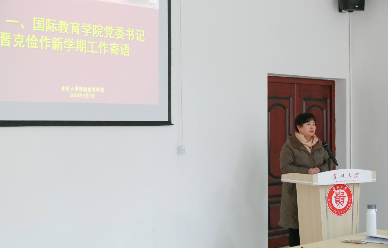为进一步提高学院涉外工作水平,提升学院教职工的专业素质和业务能力,2019年3月7日中午“贵州大学国际教育学院 2018-2019学年第二学期教学工作例会暨2019年外事纪律工作培训”在新校区明正楼226多媒体教室举行。全院对外汉语教师、各科室助管共计33人参加了此次会议。会议由国际教育学院教学科研科科长唐颖主持,共分为四个部分。