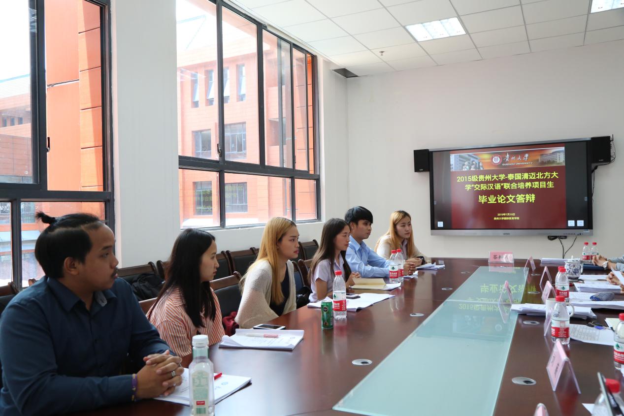 2019年7月10日上午,2015级贵州大学-泰国清迈北方大学“交际汉语”项目生毕业论文答辩在贵州大学西校区明正楼国际教育学院408会议室举行。