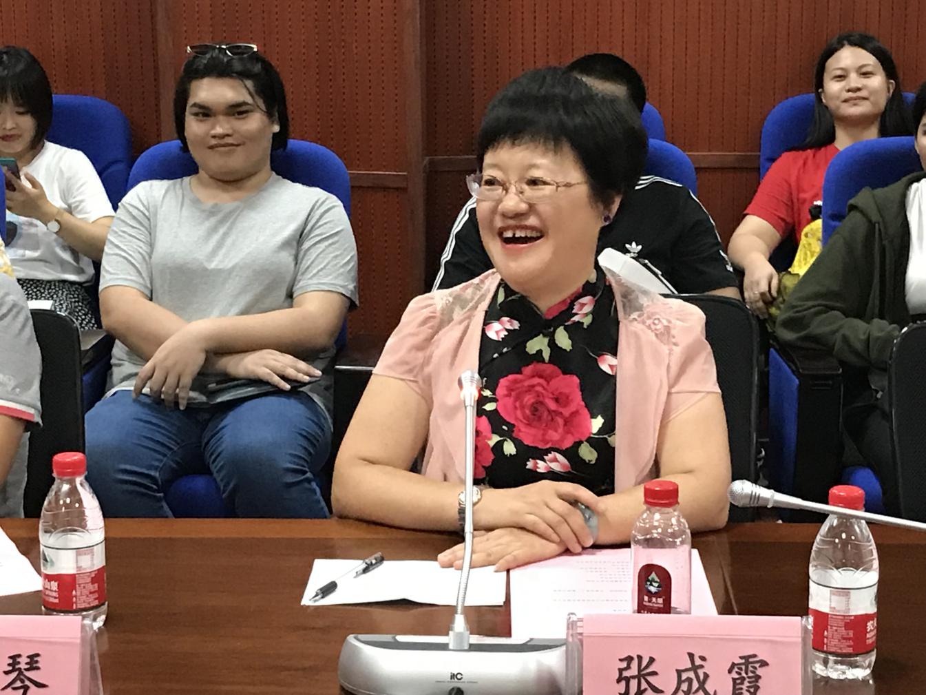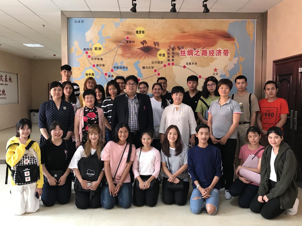 其次由张成霞院长致辞,张院长对泰国斯巴顿大学多年来的支持表示感谢,项目合作为教育交流积累了丰富的经验。张院长希望学生们能起到很好的示范作用,努力学习,在校期间多与中国学生交流学习、加强汉语的交际能力。同时,张院长表示希望两校双方共同努力,将我校与斯巴顿大学的联合培养项目越办越好。