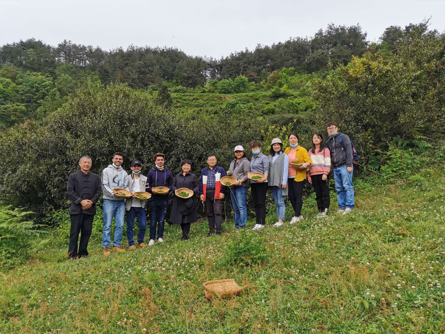 品茶之后,在工作人员的带领下,一行人来到茶山,参观野生小叶灌木型茶树,深入田间,亲自体验采茶过程。在老师们的指导下,4名研究生了解了采茶的基本要点,体会了采茶的不易,一个小时仅仅采摘到了一小撮茶叶,更加地了解农村、农民的生活。同学们将自己采摘的新鲜茶叶晾晒即可得到白茶,在茶香中收获了实践成果。