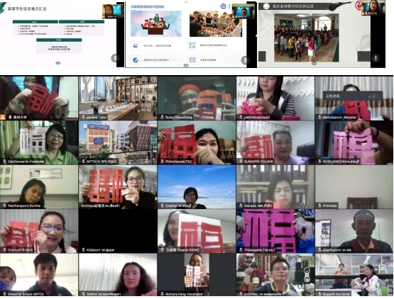 为期一天在线培训,紧张而有序。课前,贵州大学负责授课的三位老师都进行了精心准备,不仅给泰国的本土汉语教师带来了干货满满的教学分享,还将中国传统文化——剪纸,通过屏幕和泰国的本土汉语教师隔空互动。