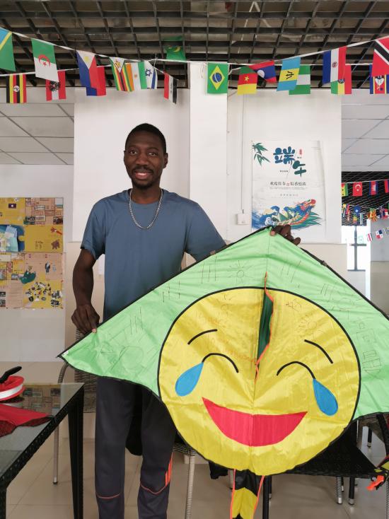 下午一点,留学生们就开始填充风筝图案了,爱燕完成了小猪佩奇一家的图案,她很开心,说老师把她当做了孩子,老师回答她“你们一直是老师眼中的孩子”;爱喇填充了圣斗士的图案,很仔细,图案很漂亮......参与活动的留学生们都在风筝上写下了自己的名字,让风筝带着自己飞翔。
