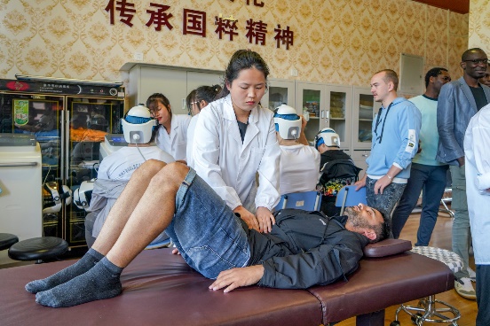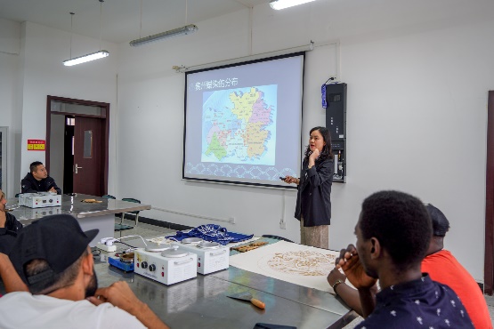 9日上午是蜡染文化课和中医文化体验课。蜡染文化课上,留学生们学习了蜡染制作工艺,并在专业技工老师的指导下,实际体验蜡染工艺中铅笔描画、蜡刀刻画等流程,让他们对蜡染这一充满中国人民智慧的技艺有了更深印象。中医文化体验课上,留学生们跟着大师学习了中医保健按摩,现场与大师积极互动,表现出了对中医文化的极大热情。