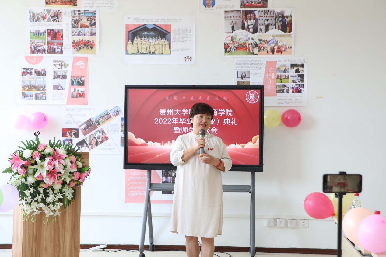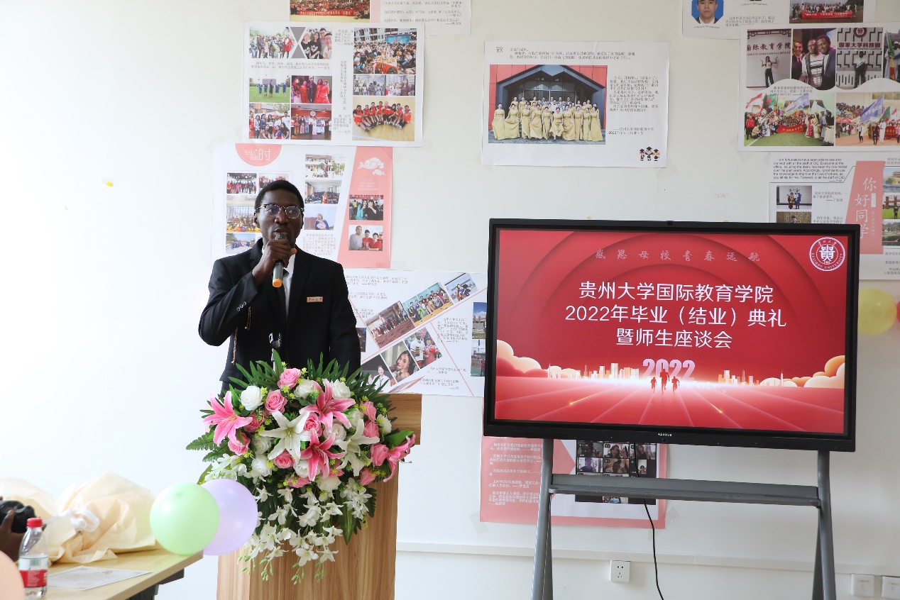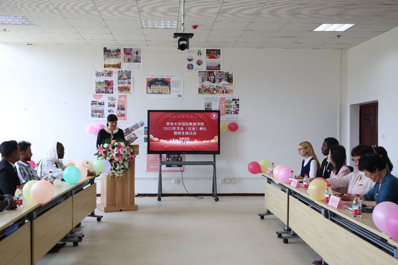 在师生合唱《贵州大学校歌》后,毕业(结业)典礼结束,转入师生座谈会,每位境内毕业(结业)留学生纷纷表达了对学校、老师和同学的不舍,亚历山大回忆了自己在疫情期间擅自外出到三亚后,如何在老师的帮助下回到学校;爱月回顾了自己刚到贵大时,假装生病不想上课的经历;缇娅娜一个劲地说“舍不得,好舍不得”......座谈会上,师生们几度哽咽,但是,不得不分别。最后,晋克俭代表学院,欢迎毕业(结业)留学生们常回“家”看看。