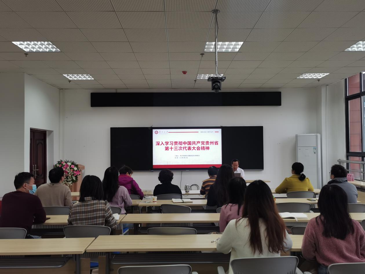 他指出,省第十三次党代会总结了五年来贵州省砥砺奋进所取得的成就,也对未来五年的发展提出了目标与期望,希望全体党员、教职工要坚定理想信念,保持发展信心,全面贯彻落实人才培养任务,结合国际学生育人特殊性,以强烈的政治担当履行使命,以严实的工作作风苦干实干,为培养“知华、友华”国际人才建言献策。