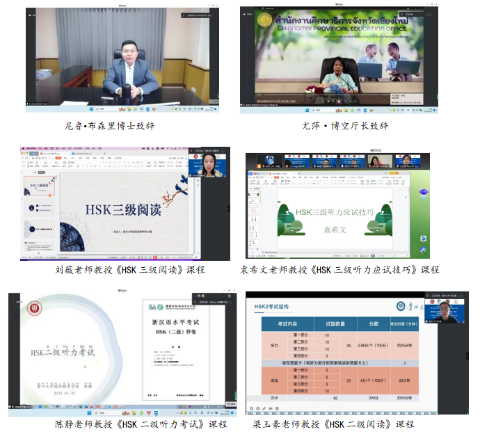 2023年5月20日,由贵州大学主办,贵州大学国际教育学院承办,泰国教育部职业教育委员会和泰国万里通语言学校协办、中国-东盟教育交流周组委会秘书处支持的“泰国本土汉语教师/职业院校学生汉语水平考试(HSK)应试技巧(线上)培训”顺利举行,来自泰国教育部职业教育委员会下属职业院校的近百名泰国本土汉语教师参加了此次培训。