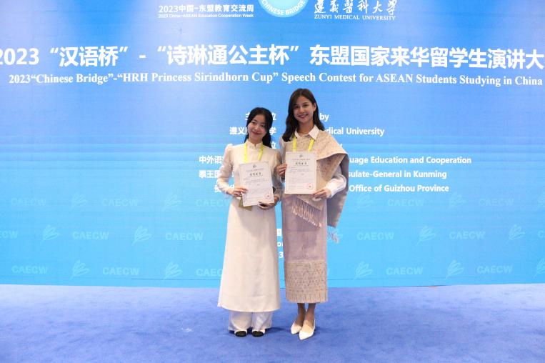 8月28日,2023中国-东盟教育交流周“汉语桥”—“诗琳通公主杯”东盟国家来华留学生演讲大赛在中国-东盟教育交流周永久会址顺利举行。我校老挝籍留学生咪纳(SENGDOUANGCHANH MINA)凭借其作品《我的中国情缘——邂逅中国,探寻美丽》荣获大赛二等奖,越南籍留学生黎海燕(LE HAI YEN)凭借其作品《只要“初恋”值得,怎么相思无益》荣获大赛三等奖,我院教师黄媛、郑佳立获得“优秀指导教师”奖。