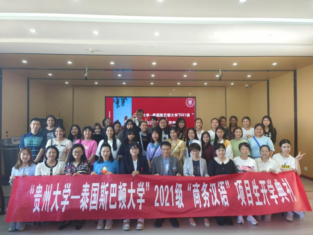 2023年9月19日下午,“贵州大学—泰国斯巴顿大学”2021级“商务汉语”项目生开学典礼在贵州大学明正楼428会议室顺利举行。泰国斯巴顿大学人文学院院长Mr.Montree Polyium、泰国斯巴顿大学博雅学院中国商务交流讲师Ajarn Phatpimon Phatthamasewi、贵州大学国际教育学院正处级组织员卓永出席典礼,“贵州大学—泰国斯巴顿大学”2021级“商务汉语”项目生和国际教育学院各科室职工、辅导员、教师代表参加,典礼由贵州大学国际教育学院副院长梁雪主持。