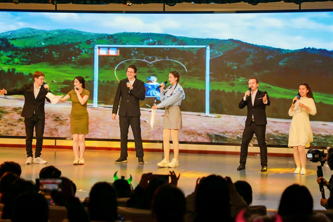 哈萨克斯坦、俄罗斯、阿塞拜疆的同学把俄罗斯的经典歌曲《喀秋莎》带给观众,让大家想起那个美好的爱情故事,希望世界永远和平,人民安居乐业。