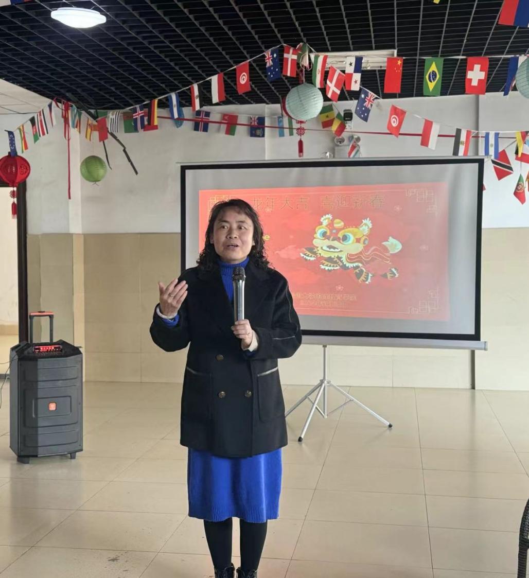 院长宁梅在致辞中向留学生们讲述了农历小年的由来,表达了学院对同学们的关心,并提前送上春节的祝福。