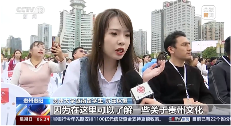 其中,来自越南的留学生阮氏秋恒在接受贵州广播电视台采访时说:“我是留学生,来这里真的很开心,因为在这里可以了解一些关于贵州文化,以后希望可以带这些文化回国宣传。”同日,该采访在《央视新闻》播出。