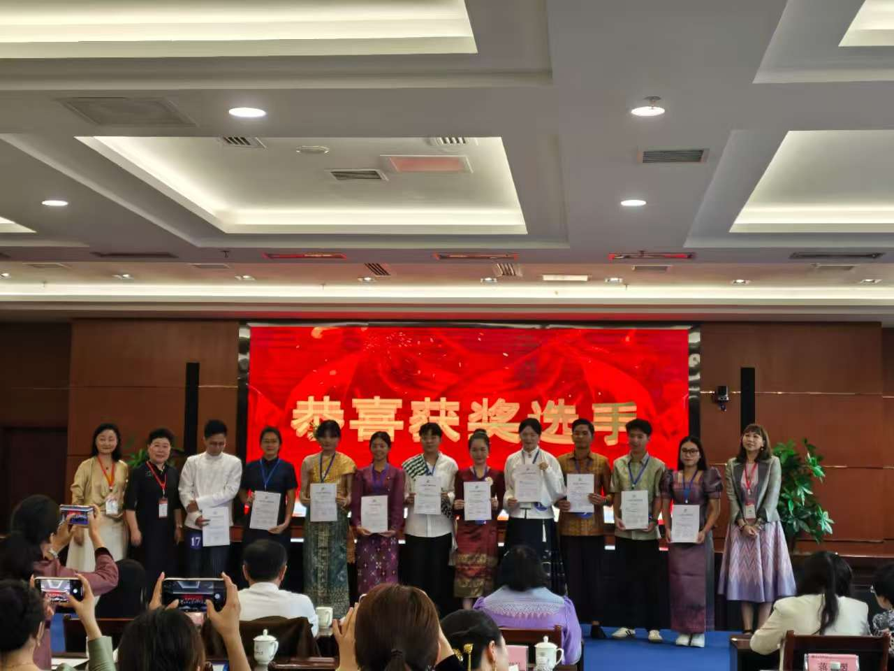 “二等奖”颁奖现场照片(图左四为我校缅甸留学生安南)