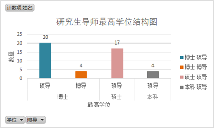 2010年之前,由于贵州区域吸引力不足、经济发展落后、科研教育经费投入不足、人才引进困难、造成科研团队老龄化,学科和学位点的发展速度严重滞后。2010年以来,学院非常重视研究生的师资队伍建设,先后培养、引进了几位优秀博士,在一定程度上缓解了研究生师资力量的不足。另外,学院重视管理队伍的建设与配备,保障研究生的日常管理与服务。在人才引进方面也取得较大突破,2020年引进牛津大学博士、特聘教授A岗教授1名。导师队伍在年龄结构、职称、最高学历分析结果如图2.1-2.4所示。