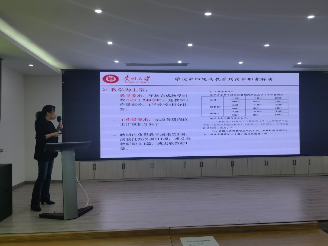 学院副院长申国伟解读《贵州大学高教系列专业技术任职资格评审办法(2023年版)》。