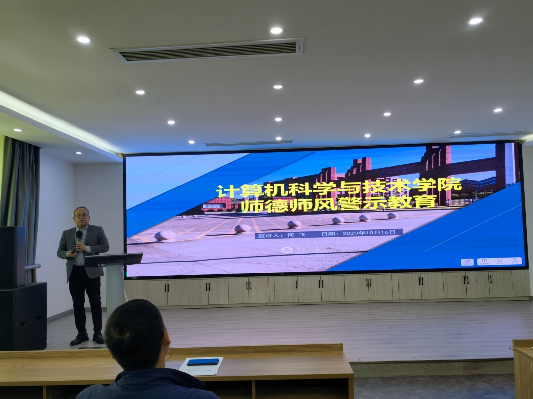党委副书记何飞作“师德师风”警示教育,并组织教职工观看警示教育片。同时,通报了学院工会的相关工作。