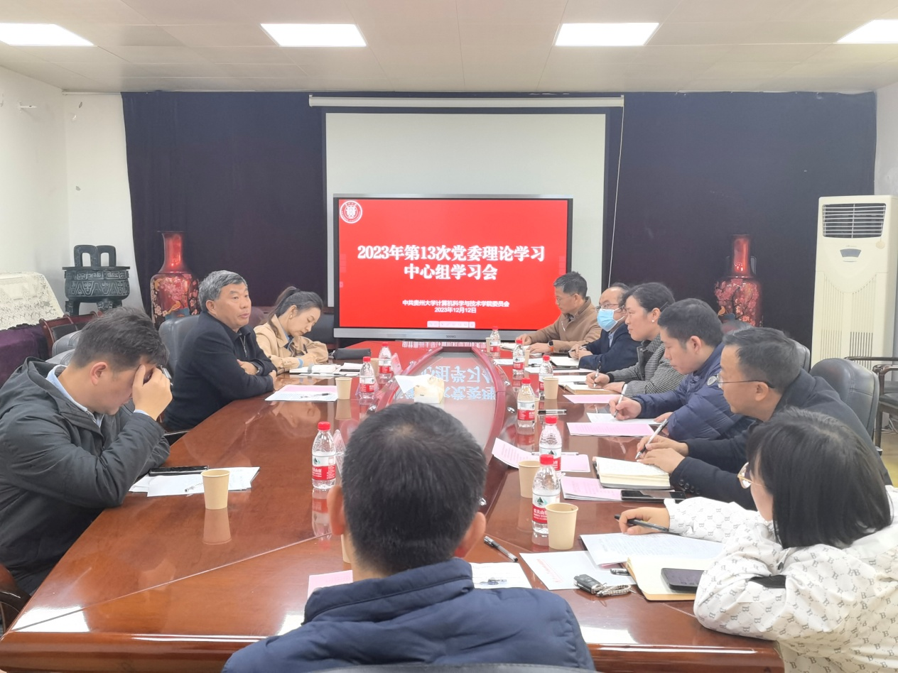 2023年12月12日上午,计算机科学与技术学院党委理论学习中心组(扩大)2023年第13次集中学习研讨会在东校区博学楼702会议室召开,校党委副书记骆长江到会列席旁听并作指导点评。校党委宣传部副部长、贵州大学报社社长孙芸及校党委办公室、校长办公室有关人员列席旁听会议。学院党委班子成员参加会议,学院正处级组织员、非中共党员处级干部、院辖各党支部书记列席会议。会议由学院党委书记龙慧云主持。