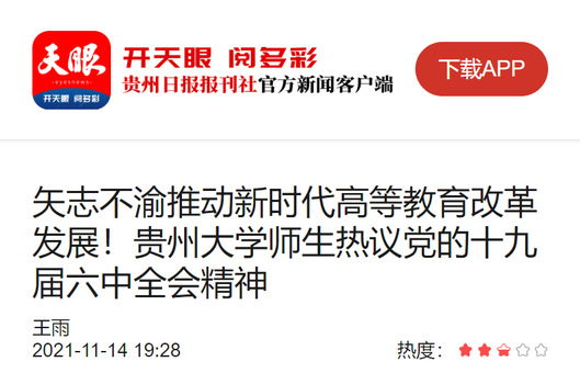 连日来,贵州大学师生持续关注党的十九届六中全会并开展热烈讨论。