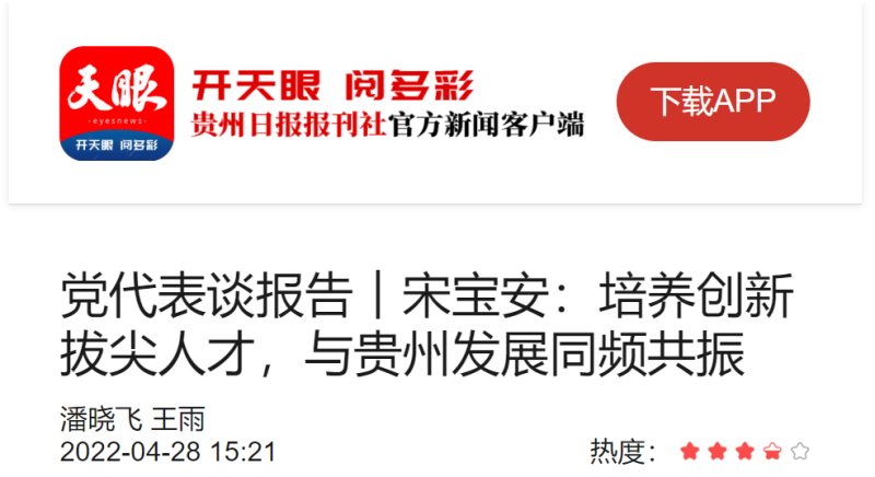 宋宝安说,省第十二次党代会以来,在省委的坚强领导下,贵州把习近平总书记的关怀厚爱转化为奋力攻坚的强大动力,培植后发优势,经济增速长期保持全国“第一方阵”,实现了从长期靠后、奋起直追到赶超进位的历史性跨越,彻底撕掉千百年来的绝对贫困标签。在习近平总书记视察贵州一周年之际,在国发〔2012〕2号文件出台十周年之际,国务院又出台国发〔2022〕2号文件,支持贵州在新时代西部大开发上闯新路。“特别是新国发2号文件中,在教育和科技领域都有重要的政策红利,贵州大学六万余名师生和我都感到十分振奋,也真切地感受到必须要拿出超常规的力度和举措主动抢抓机遇、全力用好机遇。”
