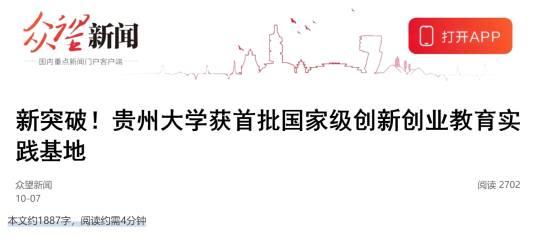 贵州大学始终秉承“明德至善、博学笃行”的校训和“做强贵州大学”的办学目标,将论文写在大地上,扎实落实立德树人根本任务,深化创新创业教育改革。