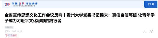 第三个词是笃信。贵州大学要当好习近平文化思想的践行者,把青年学子、以及教育系统的生动实践写在贵州大地。