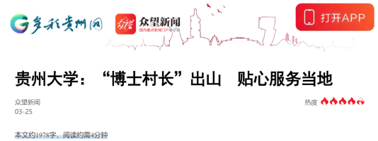 据了解,2017年由贵州大学校长宋宝安院士发起“博士村长(Ph. D Village Chief)”计划,旨在围绕党的十九大提出的乡村振兴战略,牢记习近平总书记2011年视察贵州大学时的谆谆教诲,利用学校师生知识、技术、人才优势,组建团队,走乡村、入农户、帮农企,积极服务贵州脱贫攻坚和乡村振兴。据不完全统计,累计已有超过16000人次师生参与,全校师生足迹遍布贵州乡村,实现农民增收超过30亿元;2024年“博士村长”计划首次走出国门,开展国际志愿服务活动。
