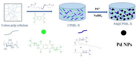 纤维素悬挂离子液体水凝胶/纳米钯(Pd@CPHIL-X)制备