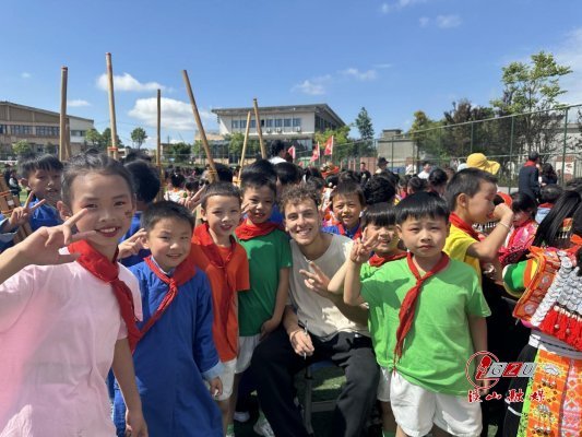 活动现场,留学生们为云顶小学的孩子们带去了歌舞表演,也通过观看云顶小学孩子们的苗族芦笙舞表演等节目,进一步了解了贵州的少数民族文化。